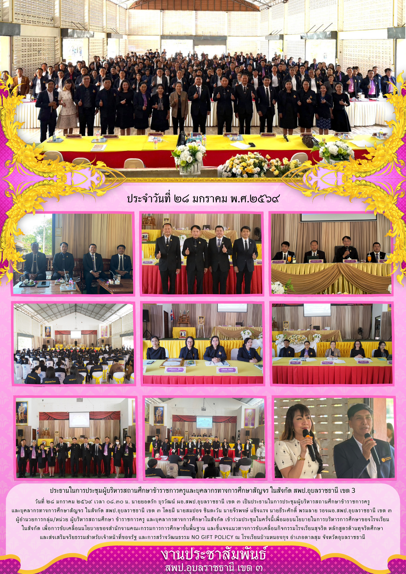การประชุมผู้บริหารสถานศึกษาข้าราชการครูและบุคลากรทางการศึกษาสัญจร ในสังกัด สพป.อุบลราชธานี เขต ๓